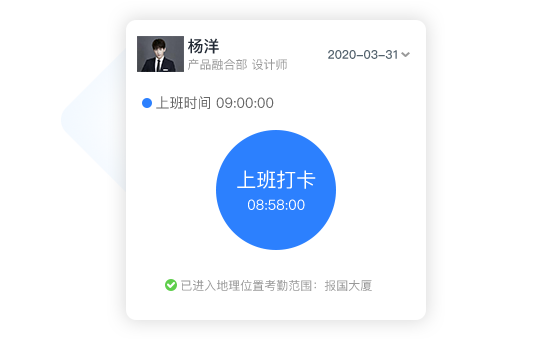 极速打卡极致体验,打开手机就能自动打卡,彻底告别排队,员工不再忘打卡;