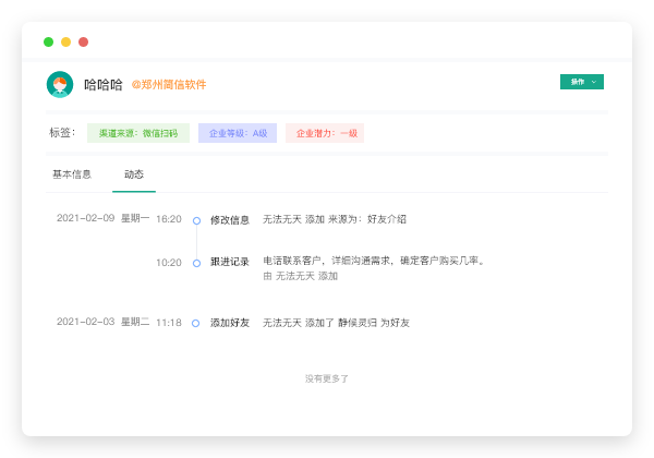 沉淀客户的标签信息、意向需求、跟进记录和购买行为,牢牢掌握客户线索资产